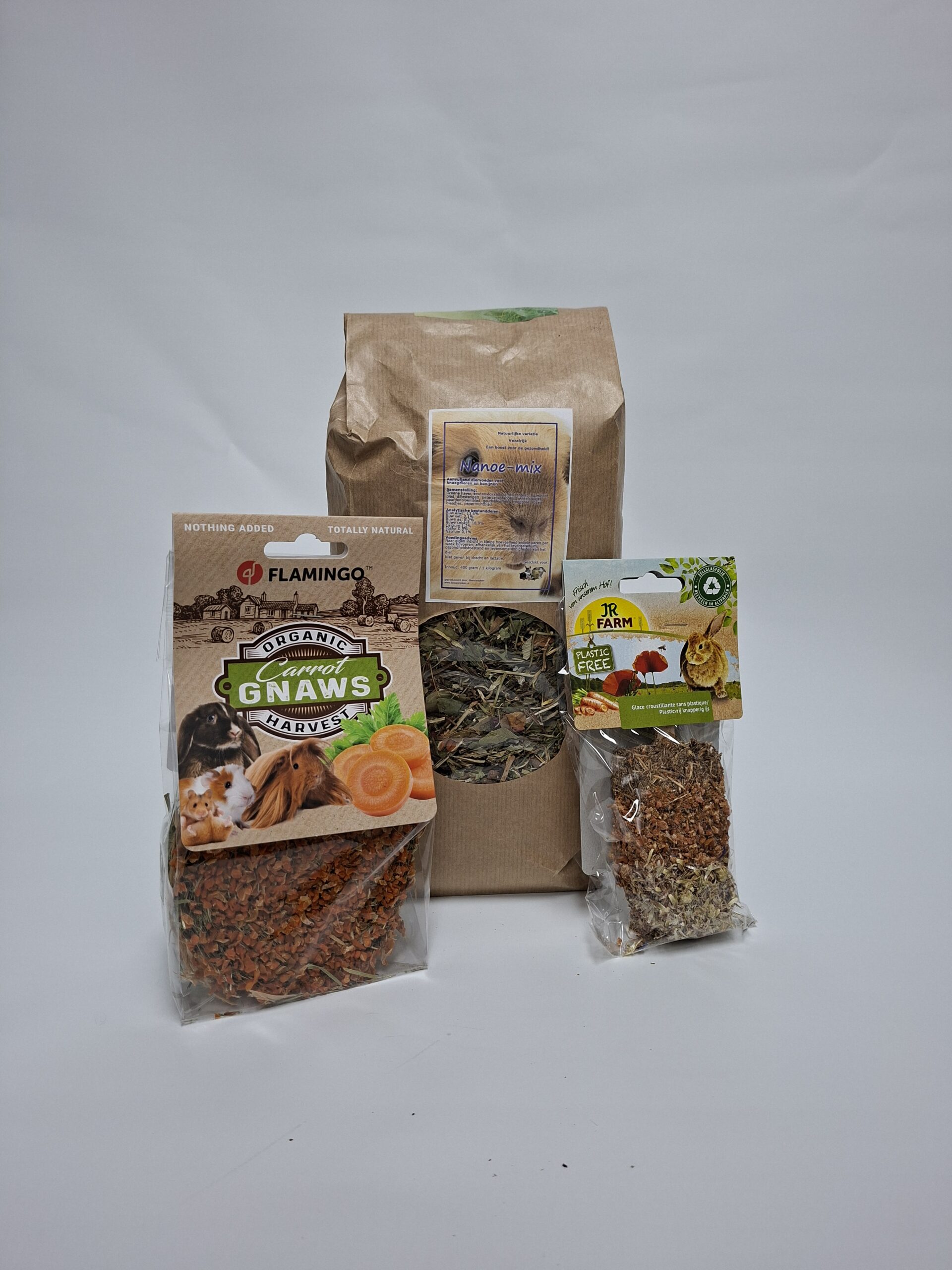 Verwenpakket 2 met Nanoe kruidenmix, een kruidenlolly en een hooirol.